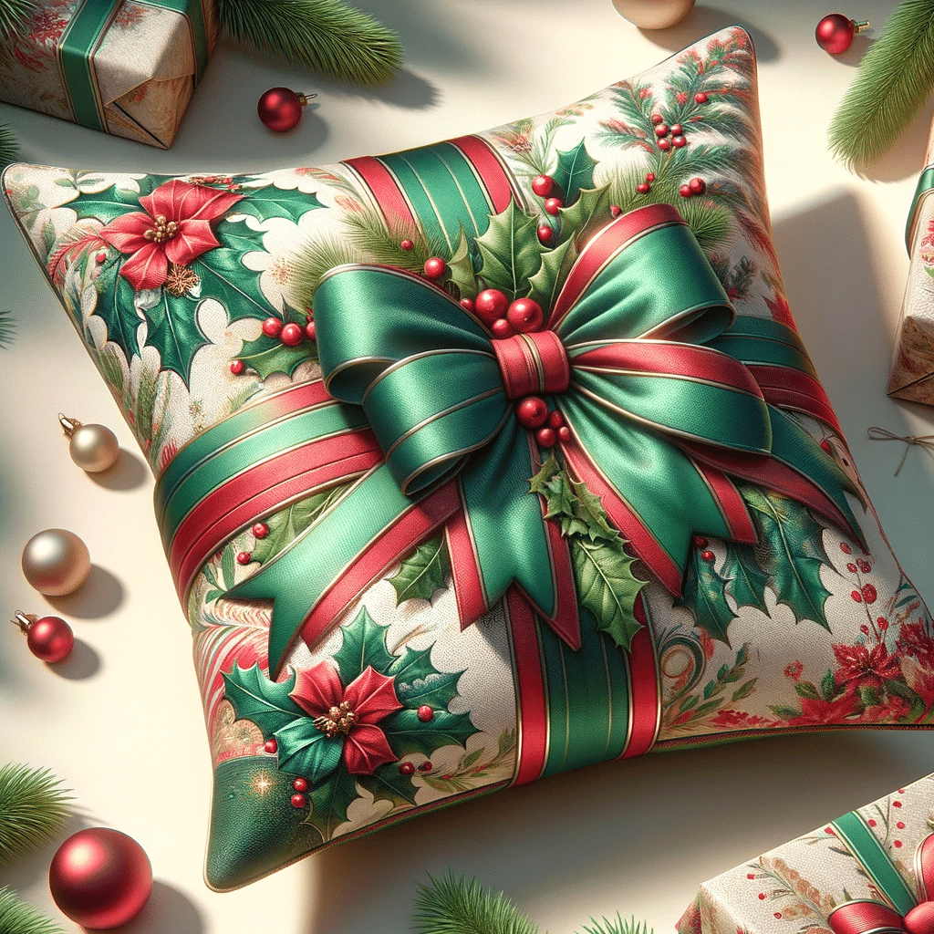 For Christmas, adorn your pillow gift with holly leaves, and red and green ribbons, or wrap it in paper printed with festive motifs.